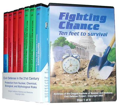 This is the most extensive DVD video and MP3 collection available for Civil Defense. All of the materials from all of our civil defense websites are recreated on these DVDs. But more extraordinary, all the essential education you need to implement the recommendations of the books are demonstrated on video for you and your family to see. This makes the material all the more real and easy to learn. Since it gives you all these materials on DVDs it gives you access to this wealth of material even when you are disconnected from the Internet.