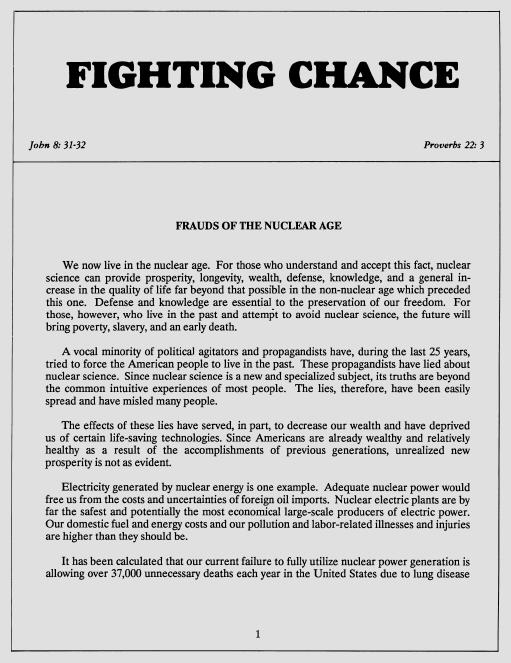 The complete archive of the top civil defense newsletter ever published, Fighting Chance, by Dr. Arthur Robinson is presented here, fully searchable as well.